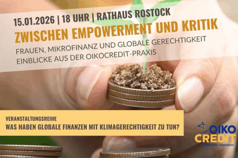 Im Rahmen der Veranstaltungsreihe zu globalen Finanzfragen und ihren Auswirkungen auf Klima und Gerechtigkeit laden das Ökohaus Bildungsteam und die Fairtrade-Stadt Rostock ins Rathaus ein: Am 15. Januar nehmen wir…